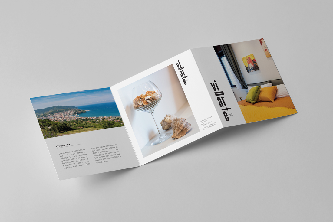 Abbiamo progettato la brochure della struttura avvalendoci di una grafica moderna e dal forte impatto visivo e con foto corredate da testi che raccontassero il B&B descrivendone ogni dettaglio.